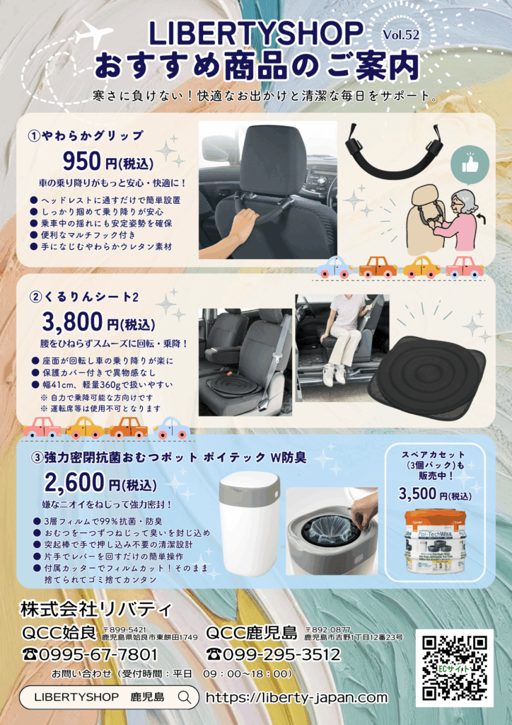 株式会社リバティでは、福祉用具に関するご相談をいつでもお待ちしております。小さなことでも、ぜひお気軽にお声がけください。来月も、とっておきの商品情報をお届けしますので、どうぞお楽しみに!