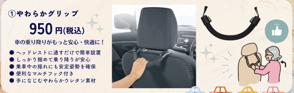 「やわらかグリップ」は、そんなお出かけの不安を解消してくれる心強い味方です。 ヘッドレストに通すだけで簡単に設置でき、握り心地の優しいウレタン素材が手にしっくりと馴染みます。