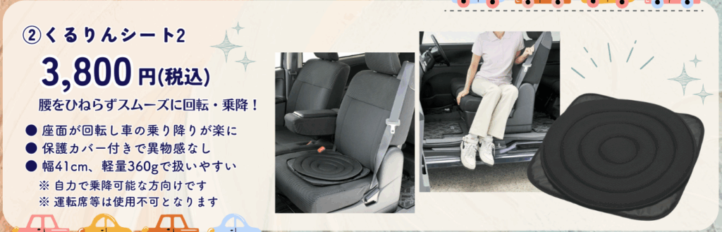(※自力で乗降可能な方向けの商品です。運転席等では使用不可となります)