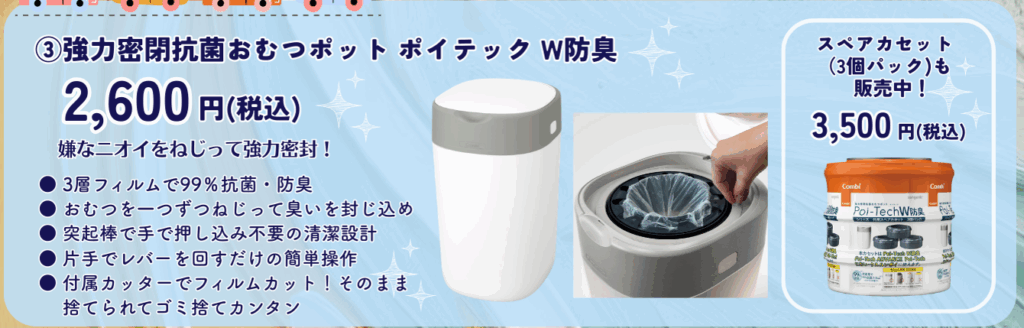 3. 強力密閉抗菌おむつポット ポイテック W防臭